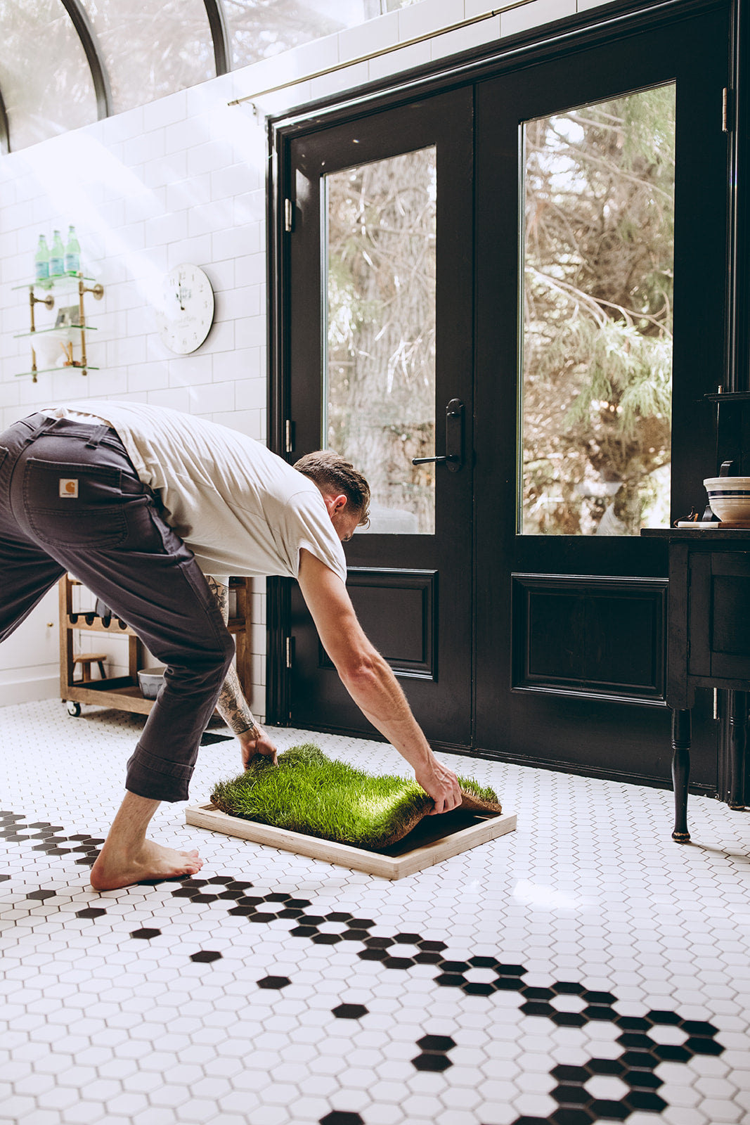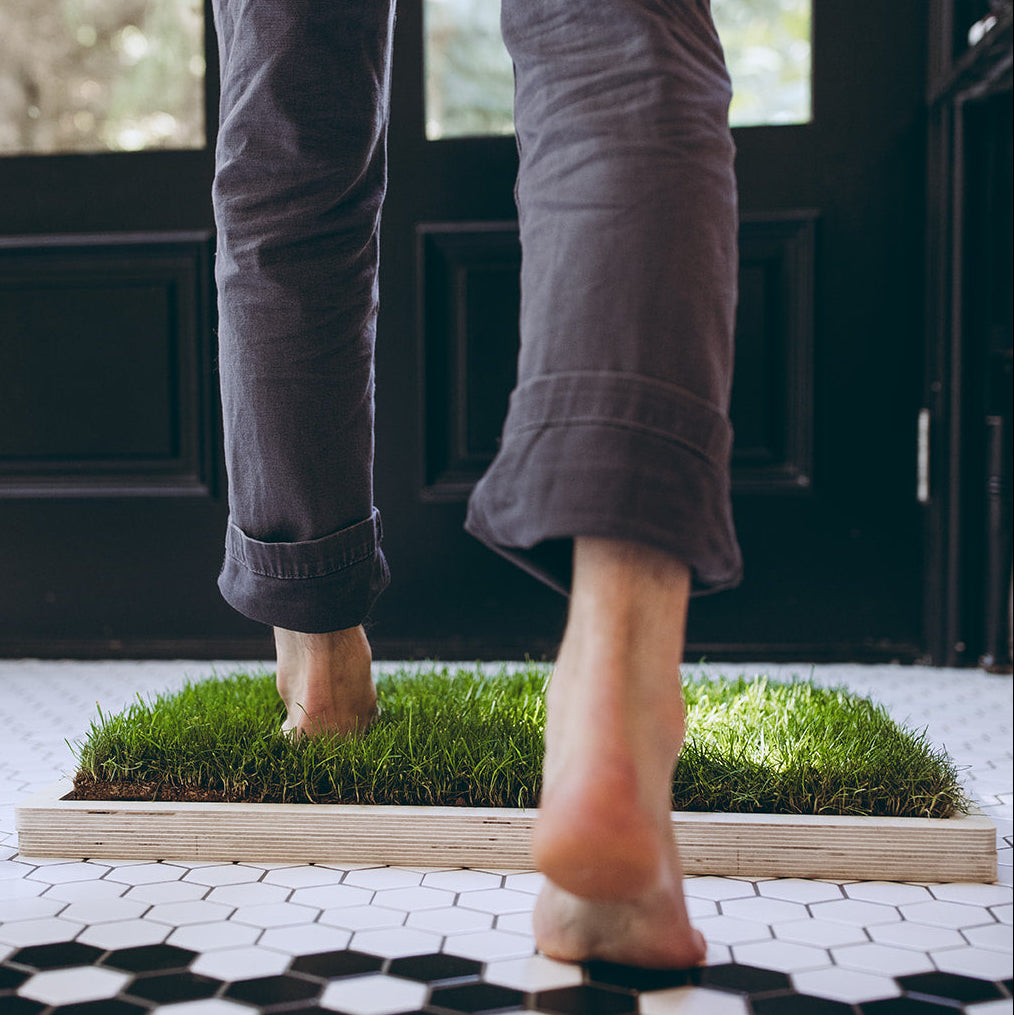 When your bare skin touches our grass, it acts like grass outside; electrons can flow just as they would outdoors, offering a practical way to get grounded while meditating, working, cooking, etc.
